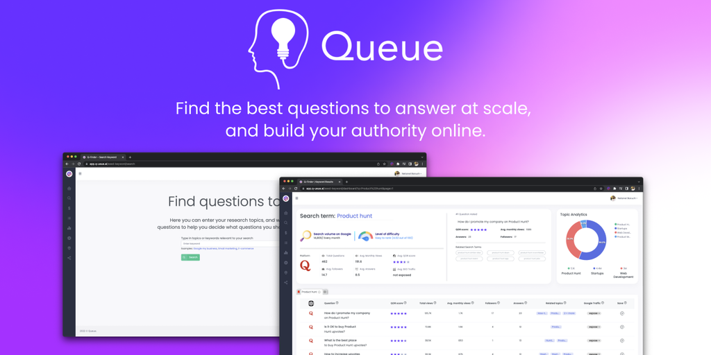 Are you an expert in your field? Q-Finder displays questions asked about your industry or company in an easy-to-use platform. With Q-Finder, you can increase your online authority and generate quality