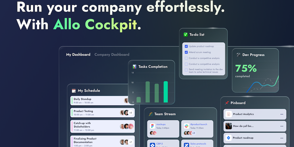 ALLO empowers managers & team leaders with a better way to stay on top of project progress, via a Team Collaboration Cockpit – which aggregates critical project and team activity across all apps into
