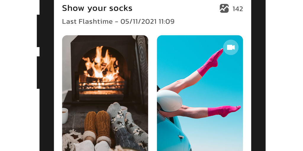 MVP of App Flashbomb is a simple social space, where users create galleries of the same moments. Every collection includes photos and short videos coming from exactly one point in time.