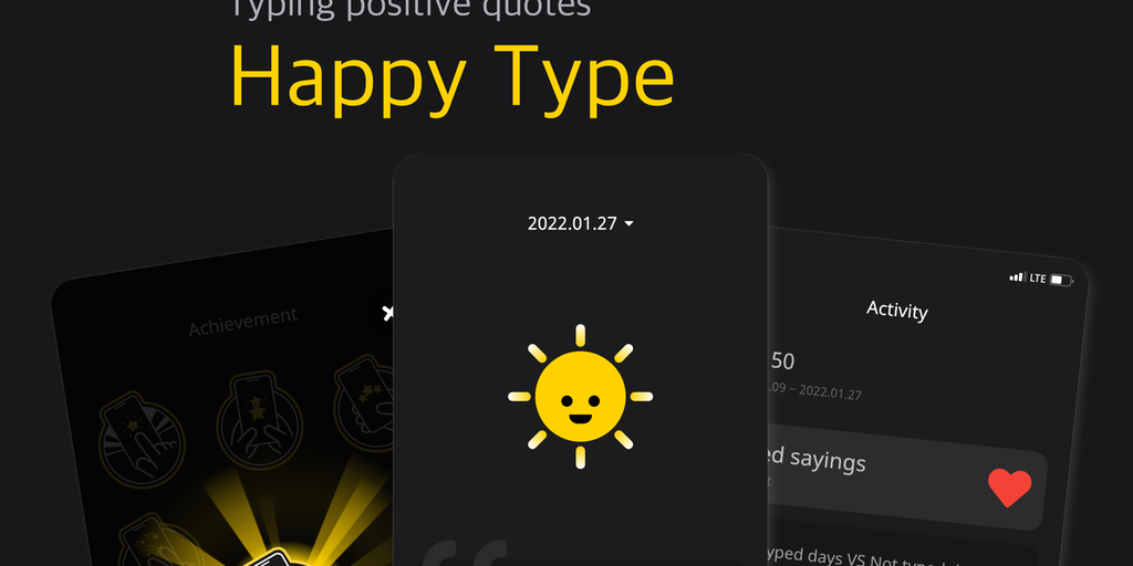 Have fun typing quotes with 'Happy'. If you follow the sayings, you will be motivated, and you will feel healed by acquiring various badges. Make a positive New Year's habit with Happy Type every day.