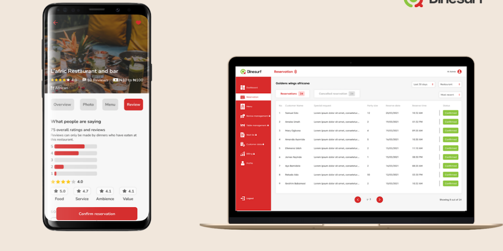 Dinesurf is a restaurant reservation platform that helps local and foreign diners in cites across Africa to find, research and reserve tables at the restaurants in those cities. Dinesurf also offers t