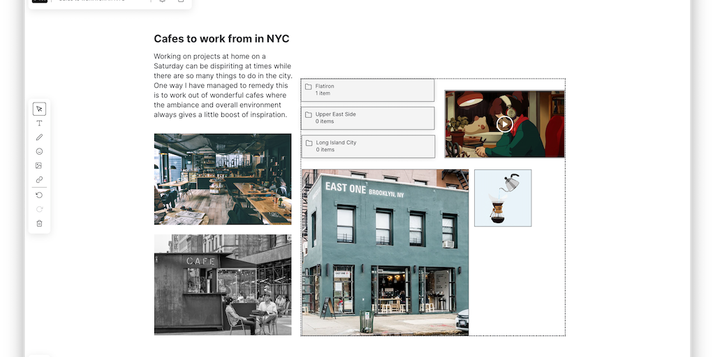 A little desktop you can bring with you anywhere. A notepad, media library, mood board, playground. Organize your ideas however you like, share it whenever you like.