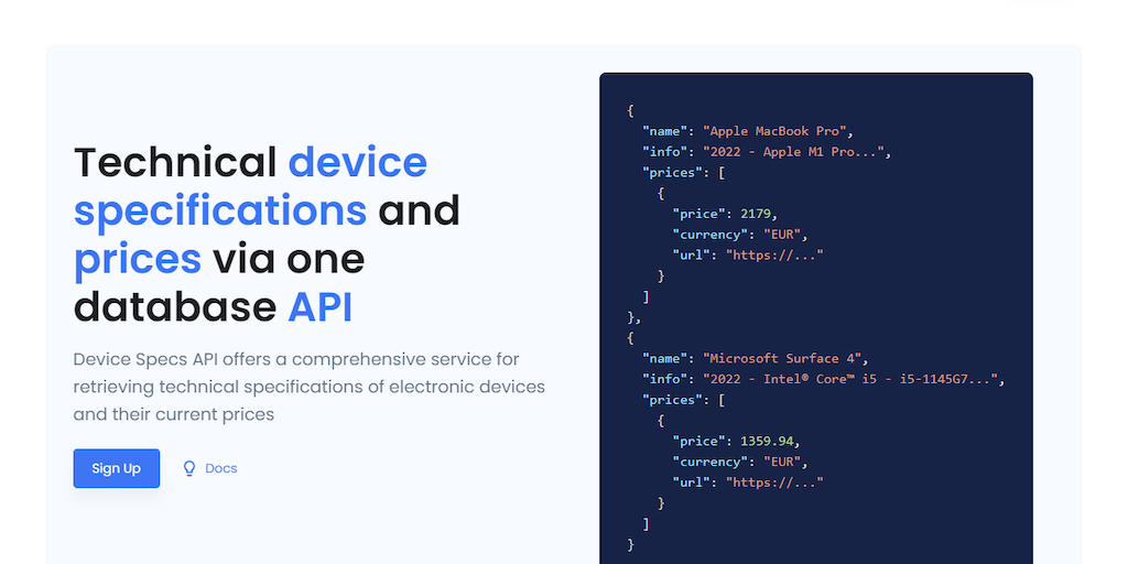 Device Specs API offers a comprehensive service for retrieving technical specifications of electronic devices and their current prices. This API can be the perfect solution for businesses or individua
