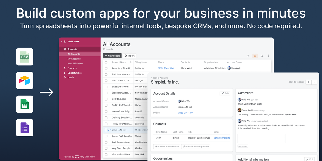 Very Good Table - Build custom apps for your business in minutes with no code | Product Hunt