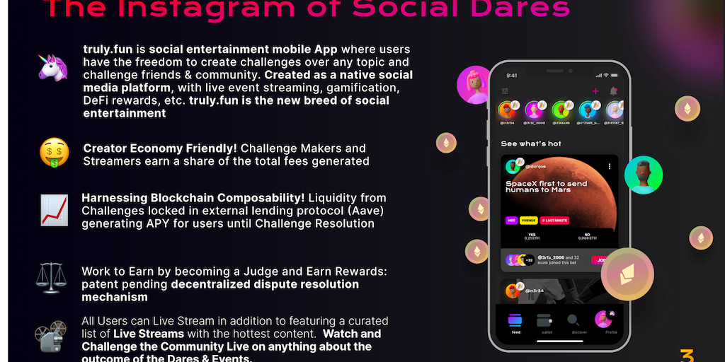 🔥Create challenges on any topic, 🎥share on video and 💰earn fees with truly.fun! 🧑⚖️Be a judge and earn rewards by solving disputes. Dare to unleash your competitive side with friends and community? J