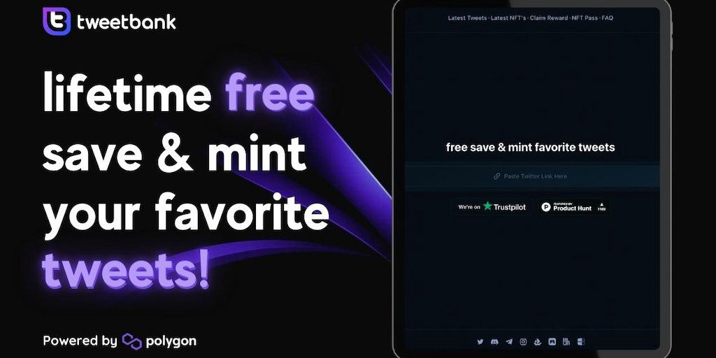 Tweetbank is a platform designed to enable users to easily forever save their tweets' lifetime and mint them into NFTs for free, while also offering Twitter monetization opportunities for users.