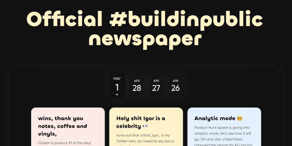 Stay up-to-date with the latest buzz from the #buildinpublic community with handpicked news and summaries by @aliszu. Get a daily dose of sarcasm and wit. Join me, and never miss a beat!