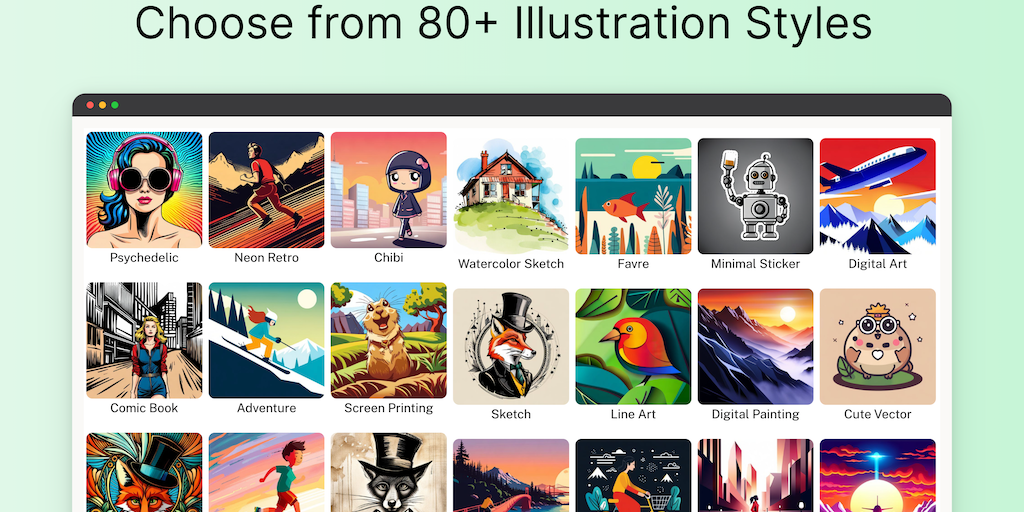 AI Website illustrations, social content, logo's, stunning presentations, backgrounds, and more! Productful offers a vast library of illustration styles, so you can generate the perfect images for any