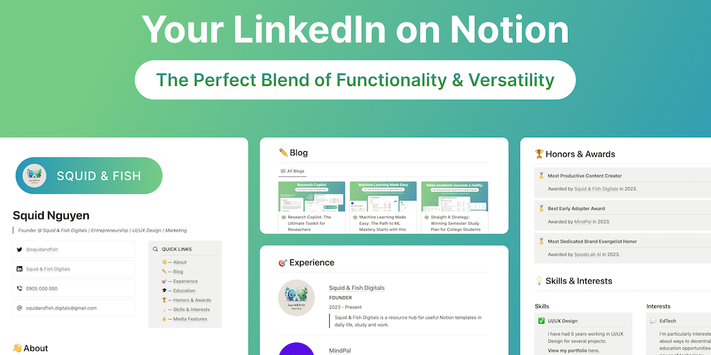 Elevate your professional profile with the perfect blend of functionality and versatility. LinkTion combines the best of LinkedIn and Notion, offering a seamless platform to showcase your achievements