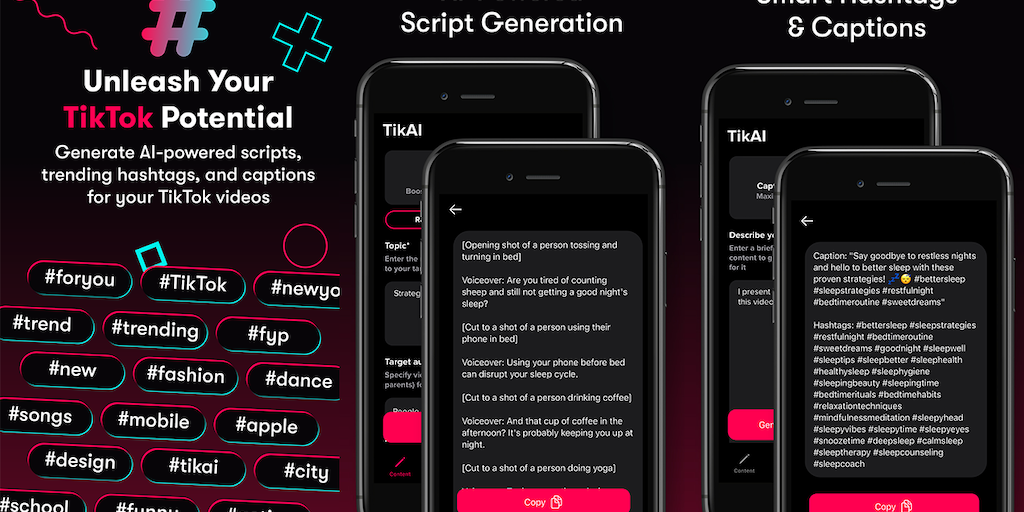 Revolutionize your TikTok game with TikAI! This iOS app uses powerful AI to generate unique video scripts, hashtags, and captions tailored to your niche. Plus, get expert advice and answers to all you