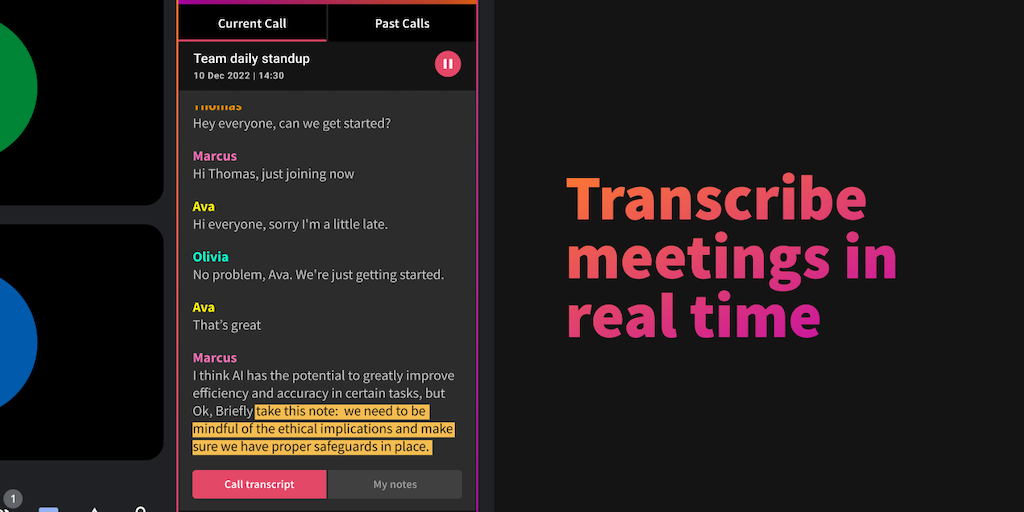 Briefly lets you focus in meetings and streamline your workflow by transcribing your calls, generating summaries, and assigning action items. Transform conversations into followup emails and project d