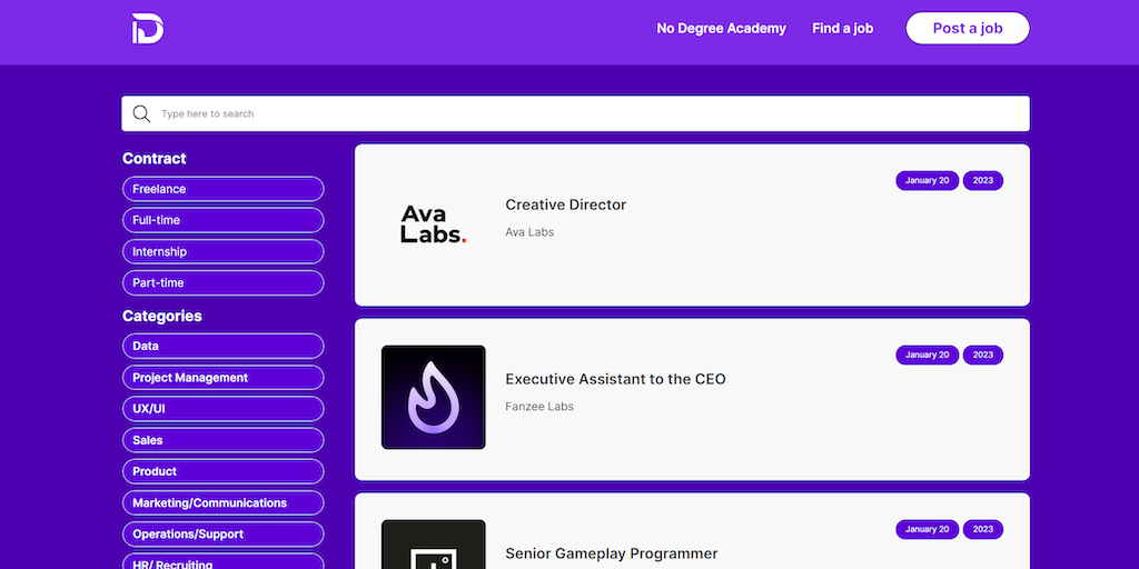 No Degree Jobs - Find the best self taught talent for your business | Product Hunt