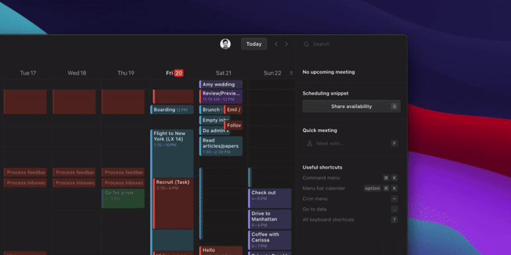 Cron Calendar. Schedule meetings and control your time like never before. Time zone conversions. Multiple accounts. A cleaner, faster interface, and — did we mention it comes with dark mode? Get early access at cron.com