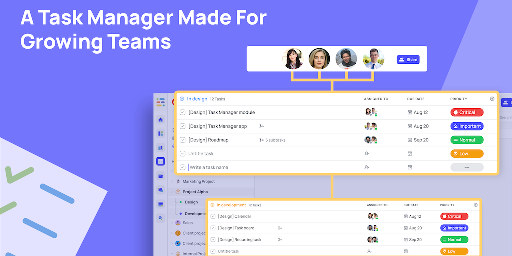Tixio task is a scalable task management tool that is customized to fit any business needs. From a simple to-do list to a complete project manager - it can scale up to every purpose. Break complex pro