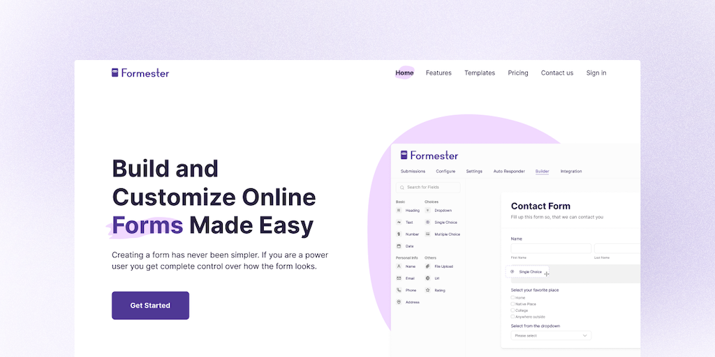 Formester is the only solution for all your form on the web. Create a survey and quizzes within minutes using the intuitive and super-fast form builder wizard.