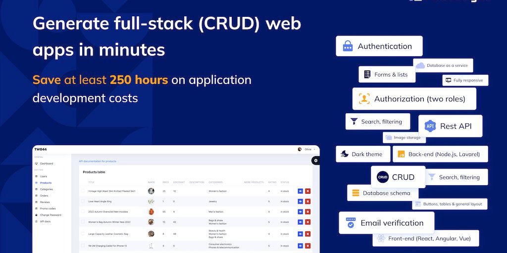 The fastest way to deliver production-ready web applications nowadays. All you need to start development is here: front-end, back-end, database, authentication, API, high-quality codebase and hosting