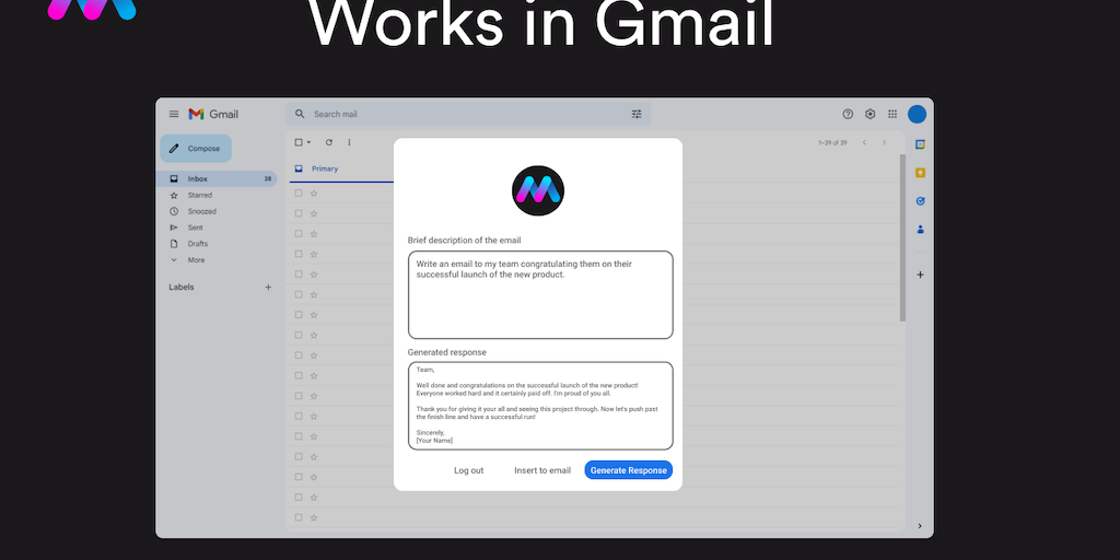 Mailyr uses the power of ChatGPT and AI to write emails for you directly in Gmail. Add it to Chrome today, and shorten your email writing times by a landslide.