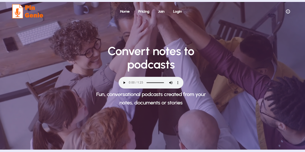 Pin Genie - Create entertaining podcasts from any word document | Product Hunt