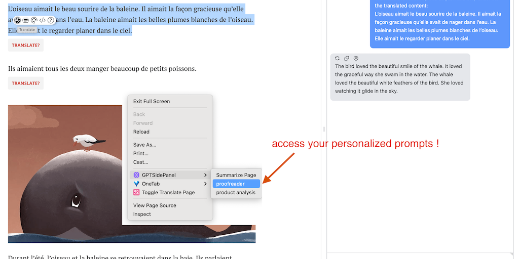 GPT SidePanel is a powerful browser extension, it can chat based your webpage content. Translate, summary, rephrase and even product analysis. You can customize any prompt according to your habits and