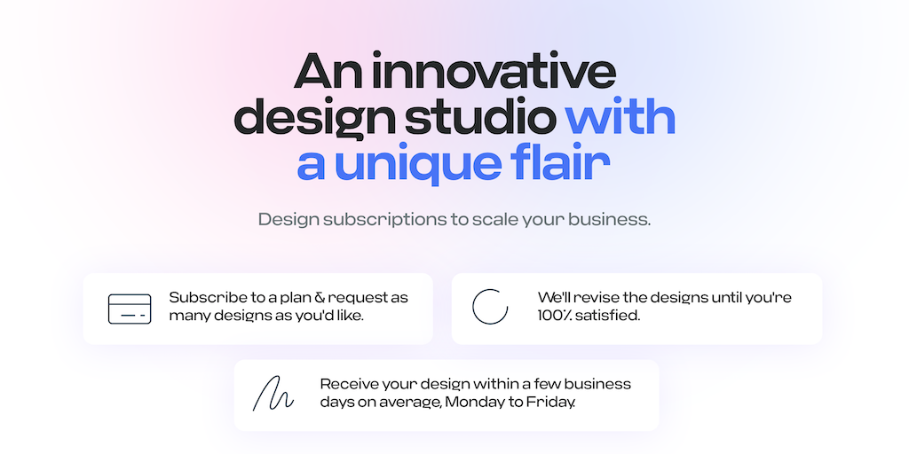 Unlock a world of design with our subscription service! Elevate your brand with consistent, top-notch designs on demand. From logos to marketing materials, we've got you covered. Simplify your creativ