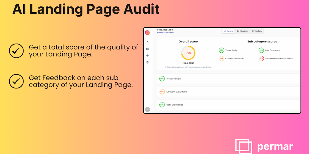 📈 Permar generates an AI-driven Audit of your Landing Page and helps you improve your Conversion Rate.