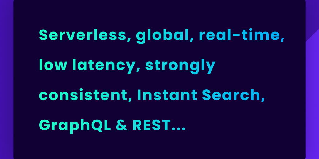 Nubostore is serverless, globally distributed, strongly consistent, low latency, real-time, with Instant-Search engine, and accessible via REST and GraphQL.