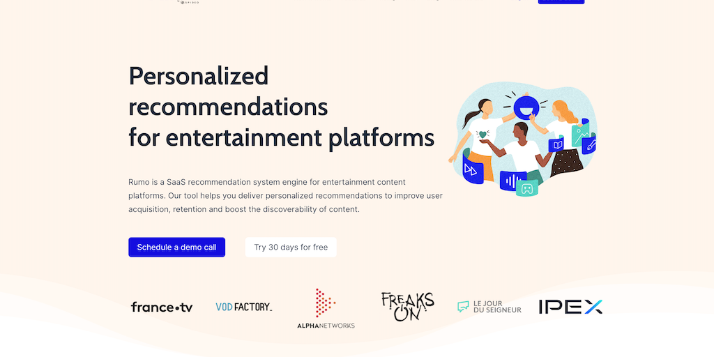 Rumo is a SaaS recommendation system engine for entertainment content platforms. Our tool helps you deliver personalized recommendations to improve user acquisition, retention and boost the discoverab