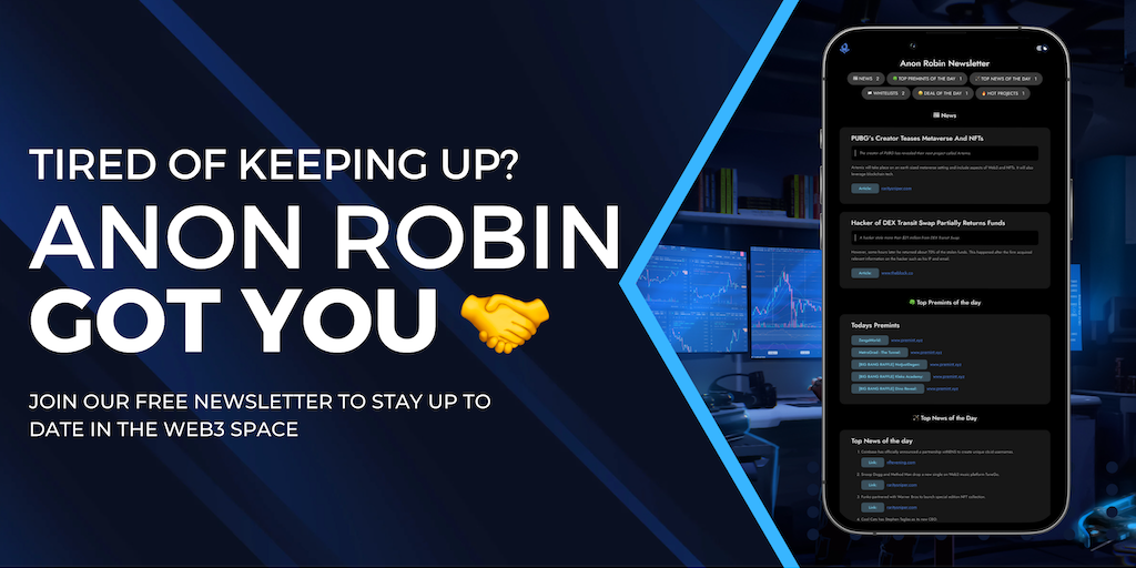 Can't keep up with what's happening in the NFT Space? Anon Robin sends you the most important News, Projects, and Deals straight into your Inbox.
