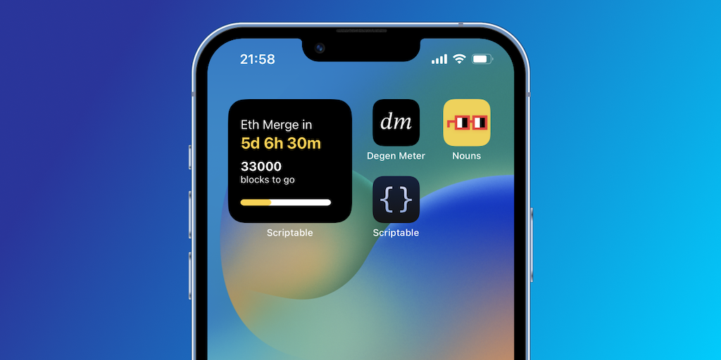 Scriptable widget to track the time to Ethereum Merge. Add it to your iPhone screen, and don't miss one of the most important events in blockchain history! And don't forget the popcorn🍿🍿🍿