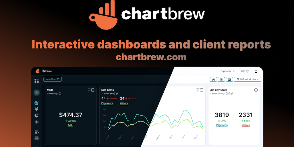 Chartbrew is an open source platform where you can query all your data sources to create and share interactive client reports for your team and other stakeholders. V2 comes with lots of new features,