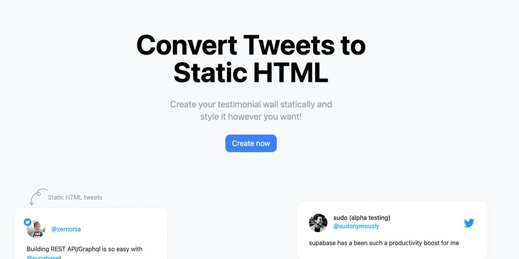 Introducing Tweetic.io! Convert Tweets to Static HTML easily with this tool! Create your testimonial wall statically and style it however you want!