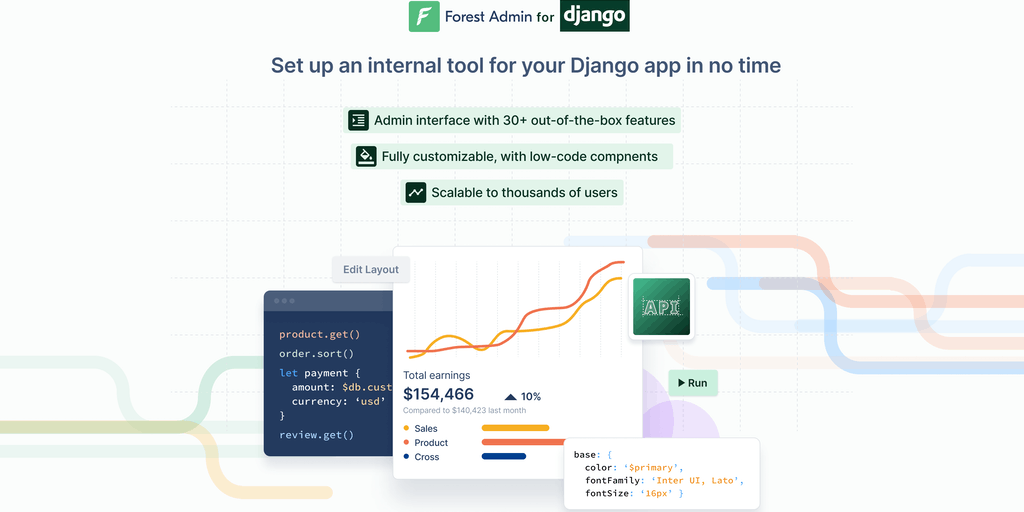 Ship a tailor-made admin panel for your Django app with Forest Admin. Easy setup, top-level security, 30+ out-of-the-box features, and advanced features to match every business scenario. Your business