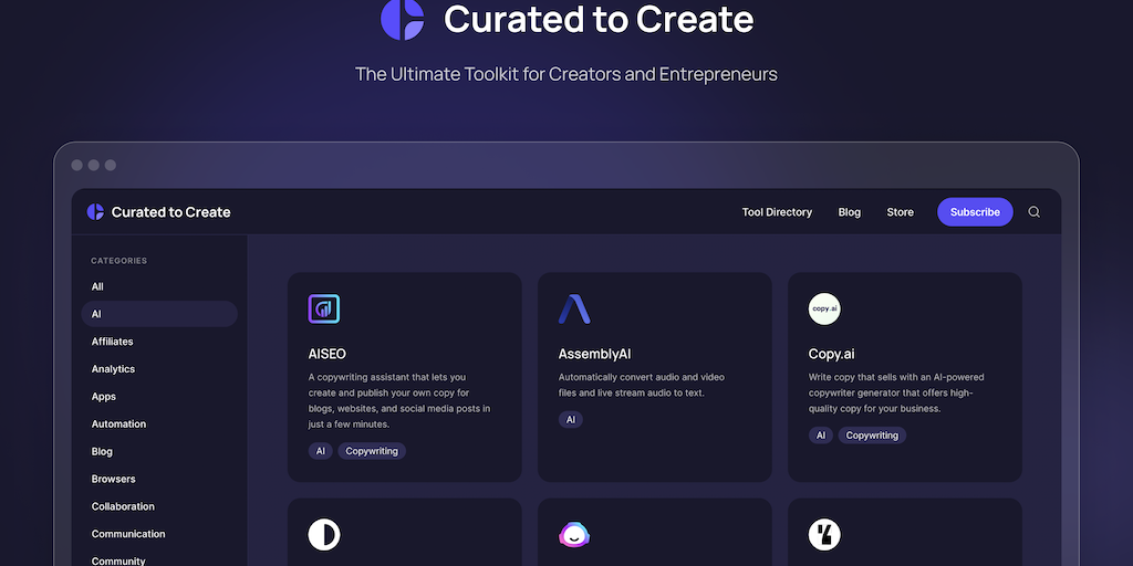 Curated to Create - The ultimate toolkit for creators and entrepreneurs | Product Hunt
