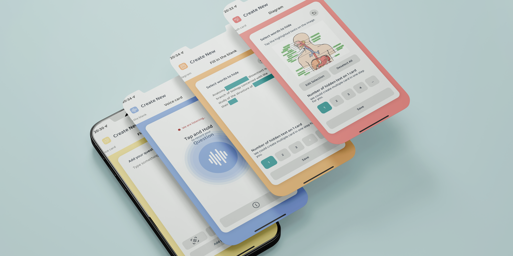 We primarily use text analyzing algorithms and voice to create flashcards up to 10 times faster than any other application on the current market. We use spaced repetition and an active recall algorith