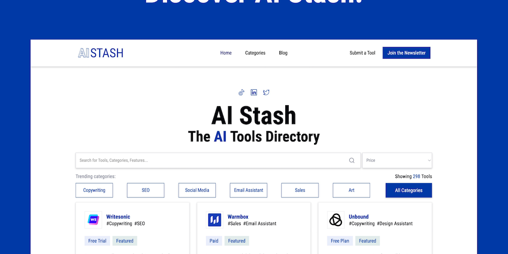 Just another directory of AI tools? Not really. AI Stash is THE go-to platform for finding AI Tools that meet your needs. Find your next favourite software from +40 categories and +300 carefully selec