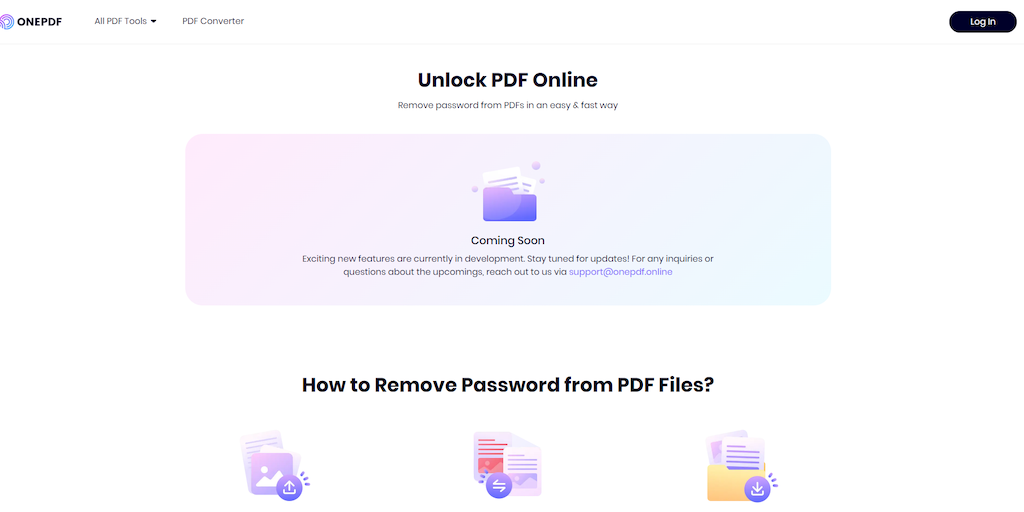 Unlock secured PDF files effortlessly with ONEPDF's Unlock PDF tool. Regain access to restricted PDF documents by removing password protection. Try it now for seamless PDF unlocking.