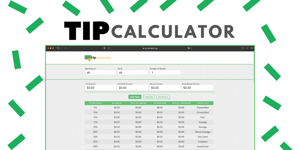 Tip Calculator is an absolutely free way to calculate an amount of tip per person or total bill in general. It is all pretty simple: choose the bill amount, tip percentage and number of people - and v
