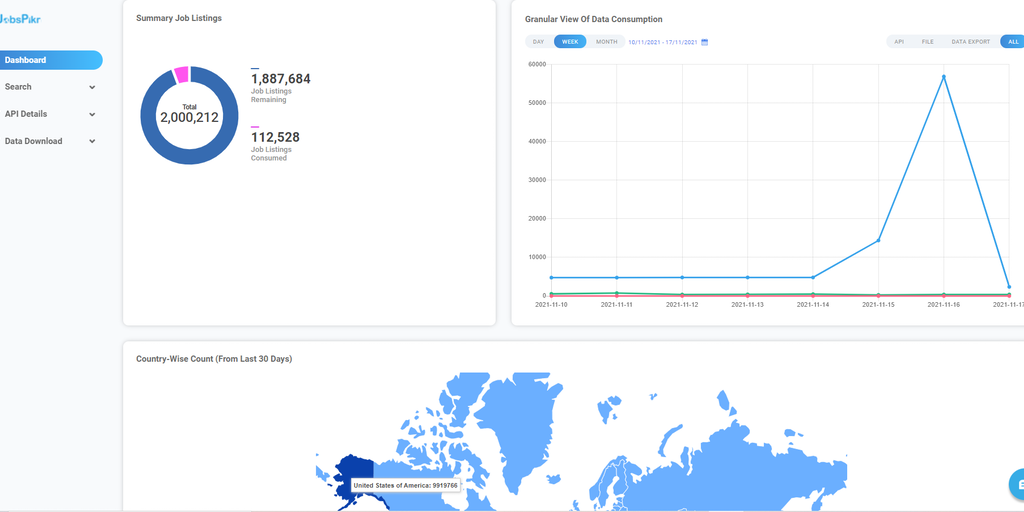 We collect Jobs data from company career webpages and popular job portals across the globe and use artificial intelligence to filter out duplicate postings. Many segments prefer to take insights and the data we crawl to boost their website, tools, workforce strategies, etc.