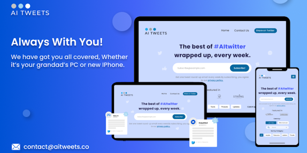 Let us introduce you to AITweets - the ultimate AI Newsletter Wrapped Upl! AITweets wrap up weekly AI updates and advancements as a Newsletter and provides a curated selection of the most relevant and
