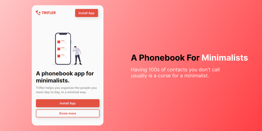 Saving every person's contact in your phonebook is a waste when you want them for a limited time. Trifler allows you to manage them with categories to make them easily accessible.