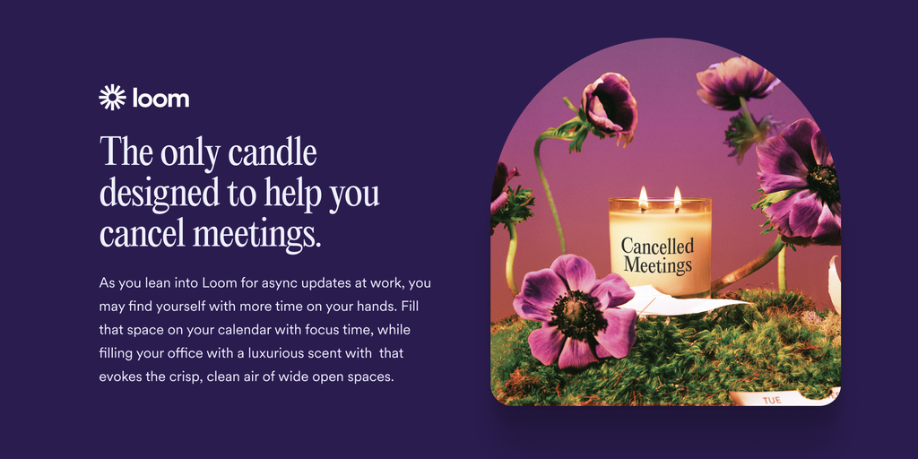 As you lean into Loom for async updates at work, you may find yourself with a little time on your hands. Fill that space on your calendar with focus time while basking in a luxurious scent that evokes