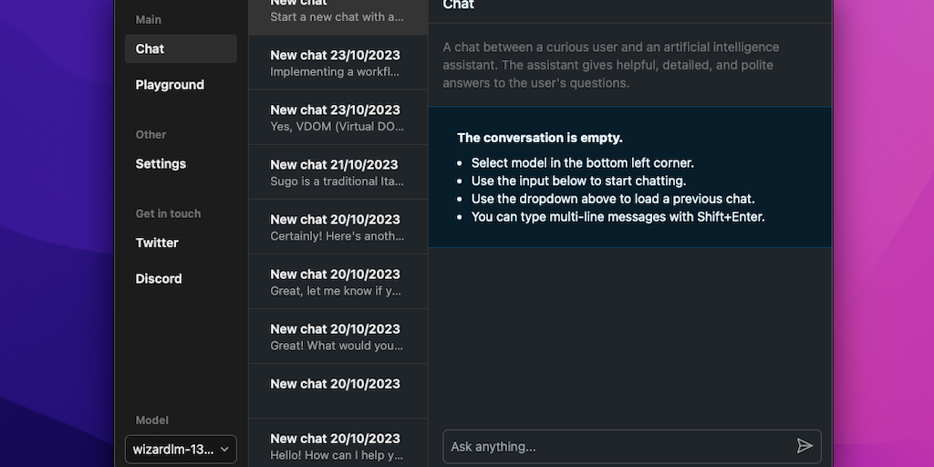 An easy to use, all-in-one desktop application to run large language models (like Llama) locally, on your computer.