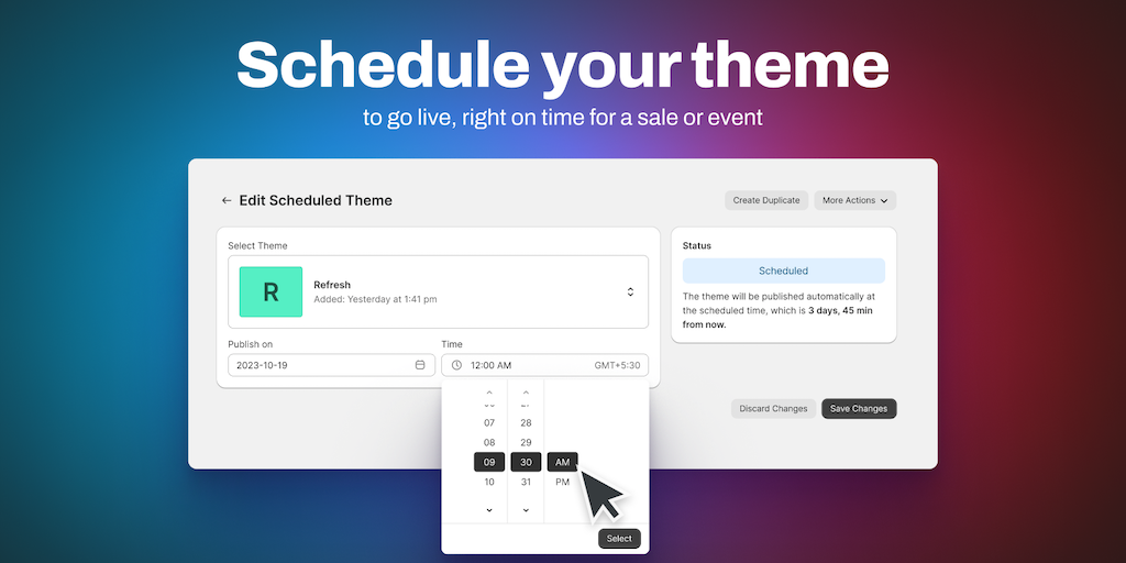 Valet is a theme scheduling tool designed for Shopify stores, perfect for busy sales seasons like Black Friday and Cyber Monday. It automates the process of updating your store's theme, allowing you t