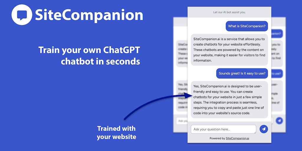 SiteCompanion - Web-content trained custom ChatGPT chatbots for businesses | Product Hunt