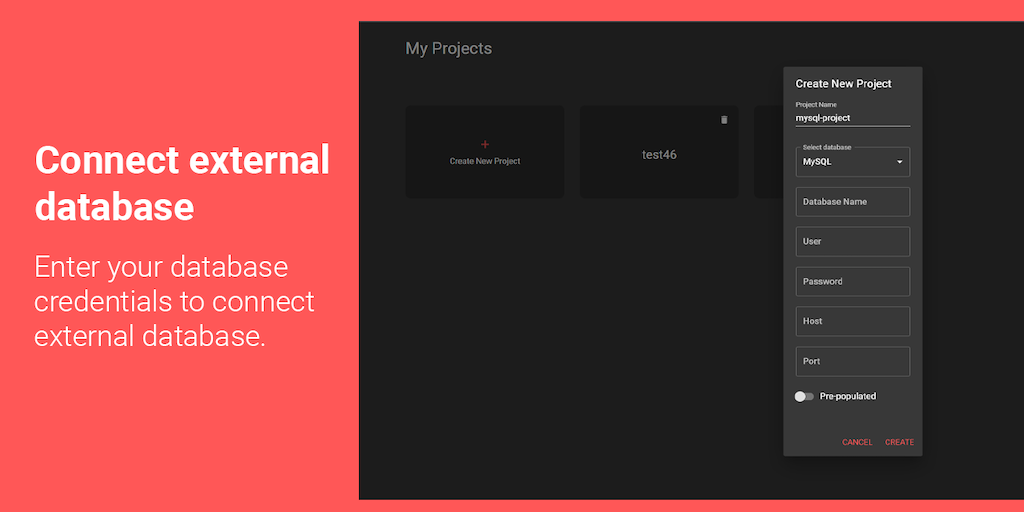 Fabloq lets you serve your database using an API which you can build using our low-code tools. You can easily connect your database to a Fabloq project and use our tools to modify the database.