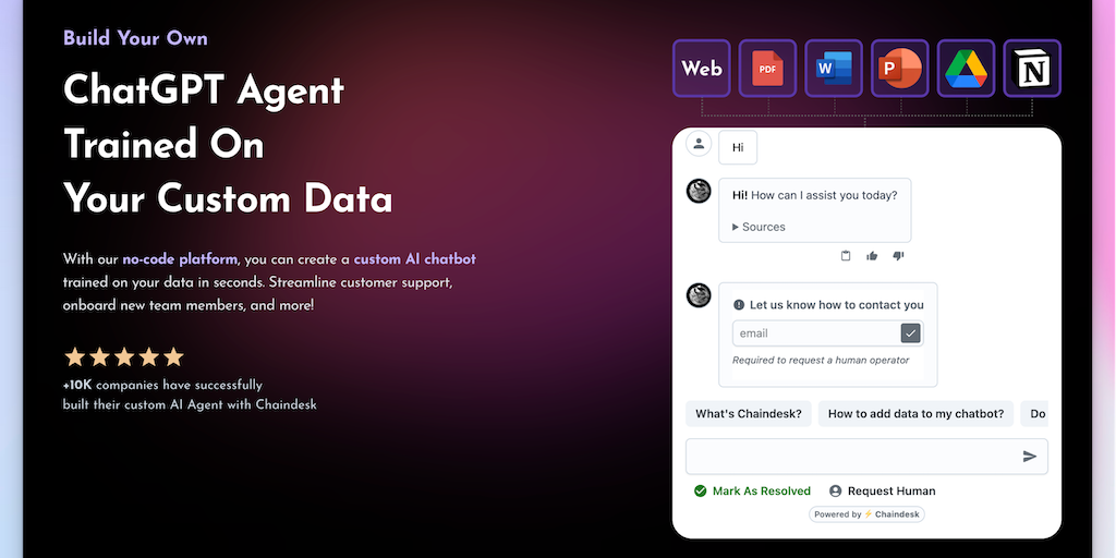 ChatbotGPT - Custom ChatGPT agents with your own data | Product Hunt