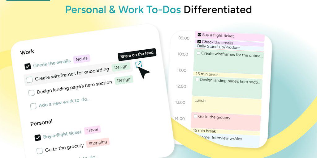 Creates your schedule with time-blocking and AI. The Team version syncs tasks, enables asynchronous work, minimizes distractions and provides analytics. It promotes teamwork, respects privacy, and pre