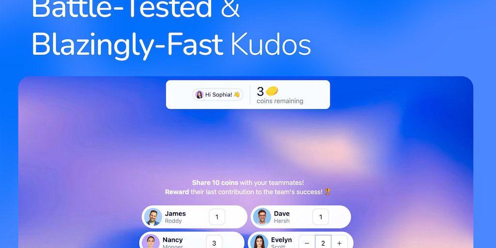 Unlock your team's power through blazingly-fast gamified praise & recognition. Validated by science. Powered by ✨ AI. Embraced by teams around the world. Foster genuine collaboration • Fuel personal a