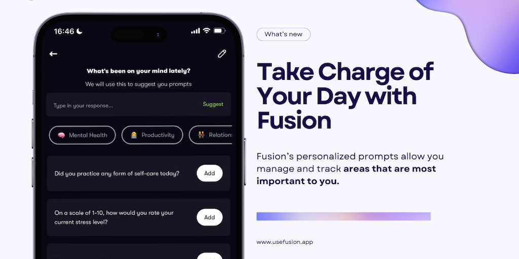 Fusion Copilot is a mobile app that uses personalized prompt notifications to help you understand the impact of your daily activities on your emotional and physical well being. It provides you insight