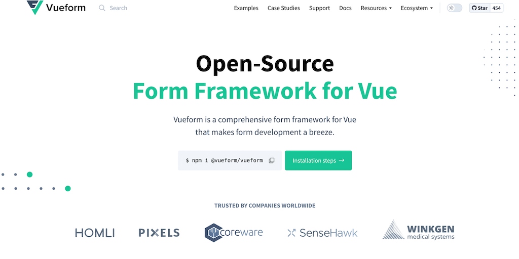 Vueform solves the nuances of form development, saving a ton of development time without trade-offs. Fully accessible, extensible via plugins and configurable for existing design systems. Comes with a